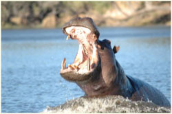 In het geval van de krokodil leidde dit tot nerveuze passagiers. Maar onder leiding van de ervaren Moses, onze kapitein, zijn we na een fantastische zonsondergang met olifanten op de voorgrond veilig wedergekeerd bij de lodge.